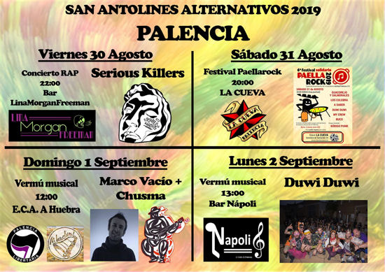 Las fiestas de San AntolÃn de Palencia ya tienen sus conciertos alternativos, entre el Festival Paellarock de La Cueva, los conciertos del LinaMorganFreeman, ECA A. Huebra y el Bar Nápoli, estamos más que servidos.