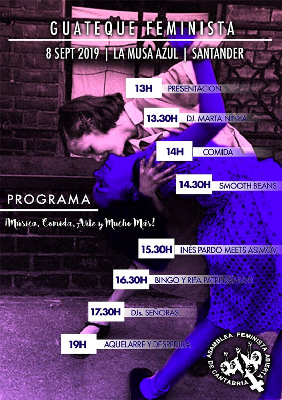 La Musa Azul de Santander, acogerá este domingo 8 de septiembre un Guateque Feminista con varios Djs y la actuación musical de Sooth Beans entre otros tantos actos, comida, arte y mucho más!!..