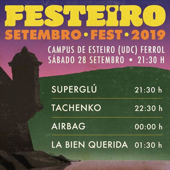 Horarios del Festeiro Setembro Fest 2019, el sábado 28 de septiembre en Ferrol con La Bien Querida, Airbag, Tachenko, Superglú. Entrada libre. Campus Universitario de Esteiro.