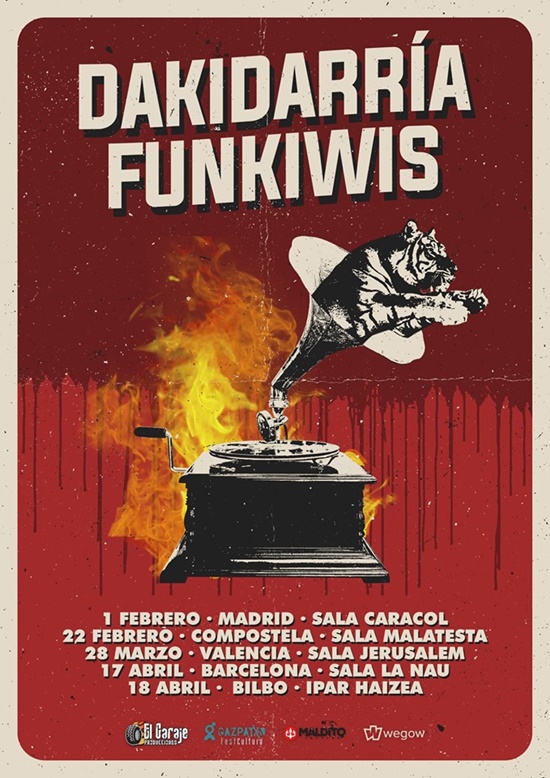 DakidarrÃa y Funkiwis compartirán cinco fechas en el 2020, una gira conjunta por diversas salas del paÃs: Madrid, Santiago de Compostela, Valencia, Barcelona y Bilbao.