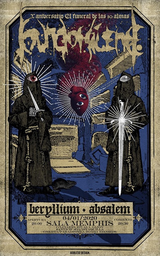 Sound of Silence quieren recordar aquel mítico concierto en la Sala Acapulco de Gijón de hace diez años cuando petaron la sala. El sábado 4 de enero estarán rindiendo un homenaje a "El funeral de las 10 almas" en la sala Memphis de Gijón con un setlist completo y especial para la ocasión junto a Absalem de Salamanca y Beryllium desde Barcelona.
