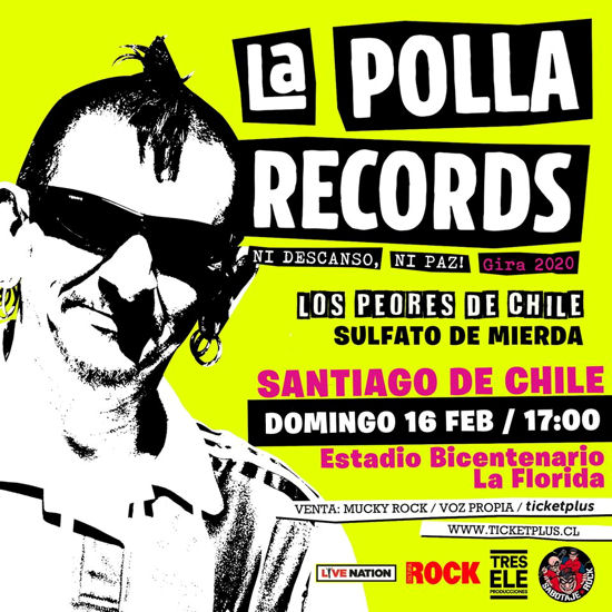 La fecha de La Polla Records en Santiago de Chile programada para el domingo 16 de febrero, cambia de recinto dada la alta demanda de entradas, el lugar elegido es el Estadio Bicentenario de la Florida, situado en Enrique Olivares #1003, La Florida. Las entradas disponibles en esta dirección.