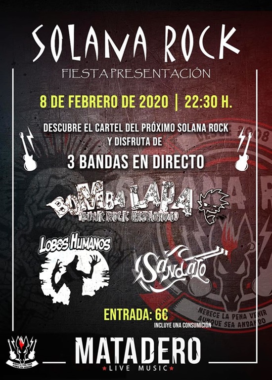 25 Julio 2020 es la fecha elegida por el Solana Rock de Ayora, Valencia, y el 8 de febrero se realizará la fiesta de presentación en el Matadero Live Music con Lobos Humanos, Bomba Lapa y Sándalo.