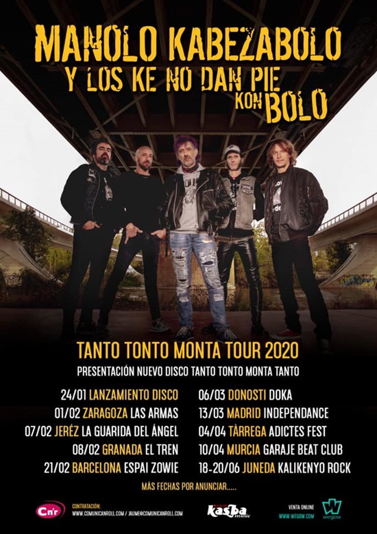 Primeras fechas de la gira "Tanto Tonto Monta Tour 2020" de Manolo Kabezabolo y los ke no dan pie kon Bolo, recordad que la presentación del disco será el 24 de enero.