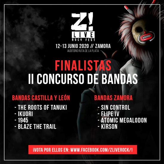 Finalistas del II Concurso de Bandas del Z! Live Rock Fest, repartidos en dos catagorÃas, bandas de Castilla y León y bandas de Zamora. Las votaciones comienzan hoy mediante "me gustas" en el Facebook oficial del festival.