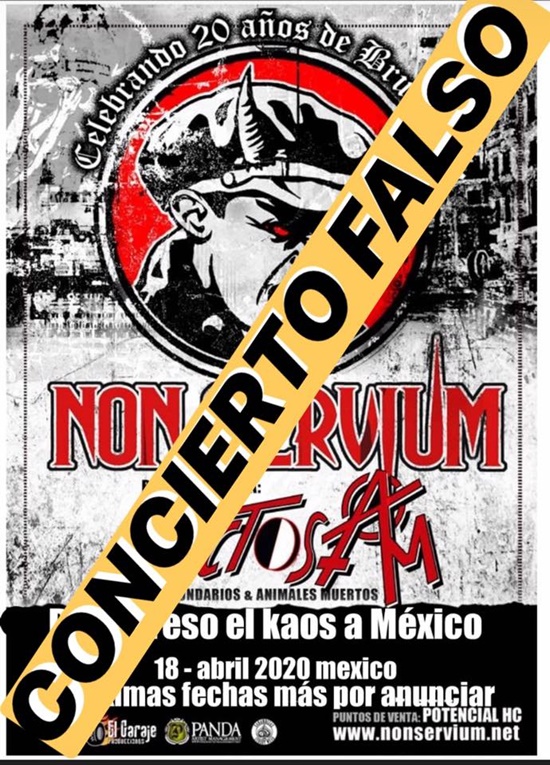Non Servium desmienten su concierto en México en abril, el cartel que está rulando por las redes sociales es totalmente falso, la banda indica que en estos momentos se encuentran en un parón indefinido.