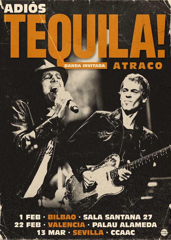 Atraco será la banda invitada en la gira de despedida de Tequila, concretamente estarán actuando junto a ellos en Bilbao, Valencia y Sevilla. 01 Febrero Bilbao Santana 27 22 Febrero Valencia Palau Alameda 13 Marzo Sevilla Ccaac