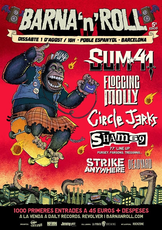 La quinta edición del Barna ´n´ Roll tendrá su Warm Up con cuatro bandas internacionales como son Lagwagon, The Flatliners, The Inspector Cluzo y Get Dead el 31 de julio en la Razzmatazz de Barcelona, entradas en Discos Revolver y Discos Daily. El festi en sà será el 1 de agosto en el Poble Espanyol con Sum 41, Flogging Molly, Circle Jerks, Sham 69, Strike Anywhere y Deadyard, entradas en www.barnanroll.com