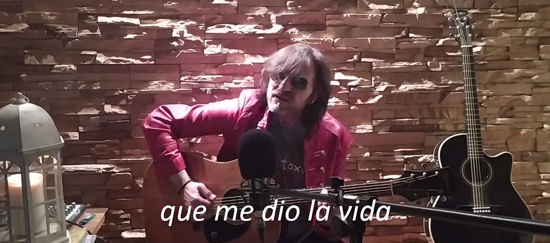 Maneiro, con guitarra en mano y bajo el lema "... si sueñas con la muerte, estás regalando vida...", interpreta "Cenizas, Cielo y Tierra".