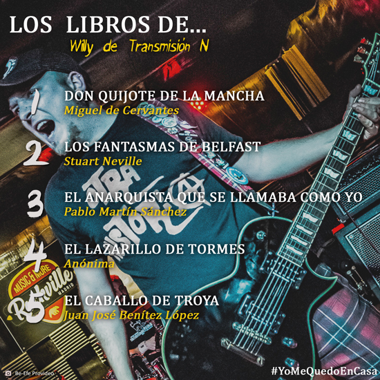 Cerramos nuestros Test con la participación de Willy, guitarrista de los madrileños Transmisión N. El artista recomienda la lectura de obras literarias como "Los fantasmas de Belfast" o "El anarquista que se llamaba como yo", y el visionado de películas como "V de Vendetta" y "La vida es bella". En la lista de reproducción de Willy no faltan ni "Jo Ta Ke" de Su Ta Gar ni "Rock and Roll terror" de Rat-Zinger. Todas las respuestas y recomendaciones aquí: