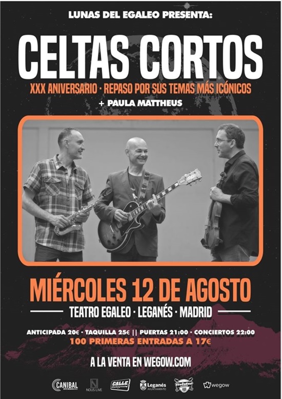 Celtas Cortos celebrarán su XXX Aniversario repasando lo mejor de su discografÃa en el Teatro Egaleo de Leganés el miércoles 12 de agosto. Entradas ya a la venta en wegow.com
