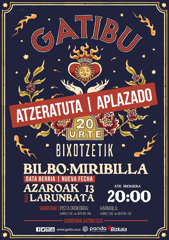 El concierto Bixotzetik de Gatibu en Bilbao, se aplaza al 13 de noviembre de 2021, según leemos en el comunicado oficial publicado en la página web de la banda.