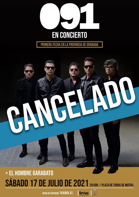 Cancelación del evento previsto para la ciudad de Motril de 091 el 17 de julio. En los próximos 7 dÃas entradas Tickbox se pondrán en contacto con los compradores para proceder a la devolución del importe de las entradas. Aquellos que compraron en un punto de venta fÃsico deben acudir allà para proceder a la devolución del importe.