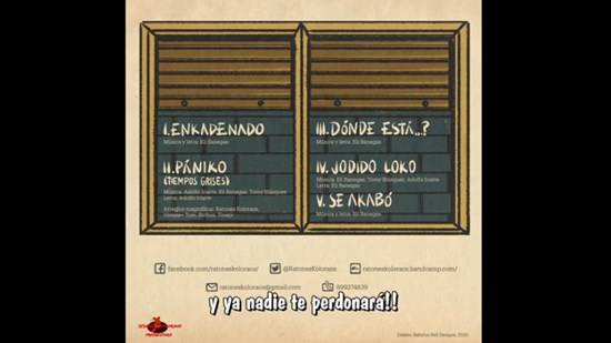 La banda nos cuenta lo siguiente:"Se akabó ..!! es el ultimo corte del EP INOPIA de ratones koloraos ,una canción esperada por el público ,que veÃa , que tardaban más de la cuenta en publicar este videoliric… una canción que arranca con mucha fuerza y desenfreno ,retrotrayéndonos de buen rollo, con su particular estilo, un poco a su pasado, por como ralentizan los tiempos con gran maestrÃa e imaginación(la parte instrumental totalmente flipante e hipnotizante) de como entran musicalmente en lo mas profundo y salen con un desenfreno brutal…una canción con la que se despiden del EP INOPIA , dejando patente en el texto su particular manera de ver ,con cierta ironÃa y sarcasmo ,como se corta por lo sano con una actitud egoÃsta ,presuntuosa ,conservadora y para colmo, sin ser consciente de ello .Hace justicia el tema despidiéndose de INOPIA ,delicatesen de ratones koloraos."