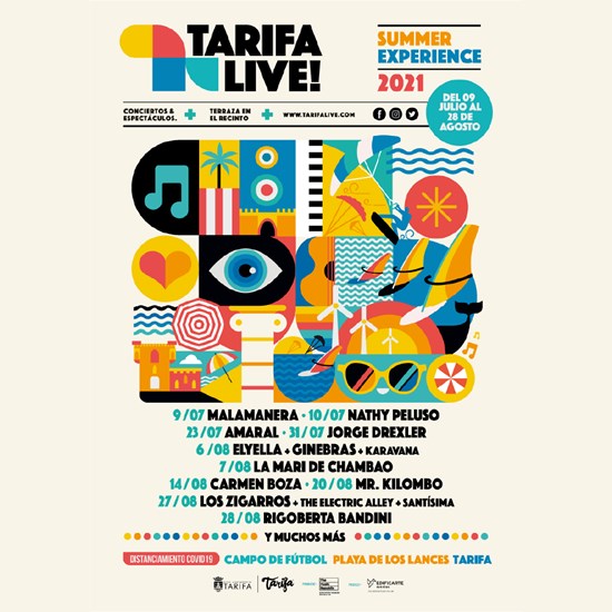 Tarifa Live Summer Experience, ciclo de conciertos para este verano que de momento confirman a grupos como Amaral, Mr. Kilombo, Los Zigarros, Jorge Drexler, La Mari de Cambao...Entradas a la venta en tarifalive.es