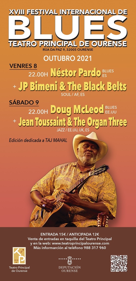 XVIII Festival Internacional de Blues Teatro Principal de Ourense a celebrar estos próximos dias, viernes 8 y sábado 9 de octubre. La novedad de esta edición es la incorporación de un artista de Jazz en el cartel por primera vez en la historia de este certamen. Se trata del gran saxofonista tenor norteamericano Jean Toussaint al frente de su último proyecto The Organ Three en su primera y única actuación en Galicia.