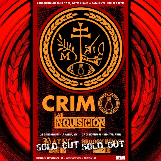 Ya no hay entradas para ver a Crim y La Inquisición, tanto en Vic como en Valls, ya os habÃamos avisado pero ya es oficial, ahora sólo queda esperar a lass fechas, y recordar, hay que llevar mascarilla y pasaporte de vacunación / test negativo.