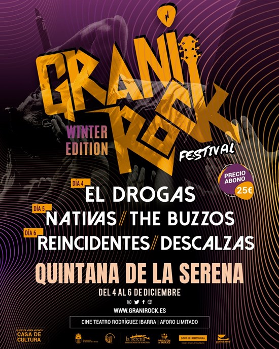 El GraniRock tendrá su edición invernal antes de que acabe el año, 4, 5 y 6 de diciembre en el Teatro RodrÃguez Ibarra (Quintana de la Serena). Abonos a la venta a partir del 18 de noviembre.