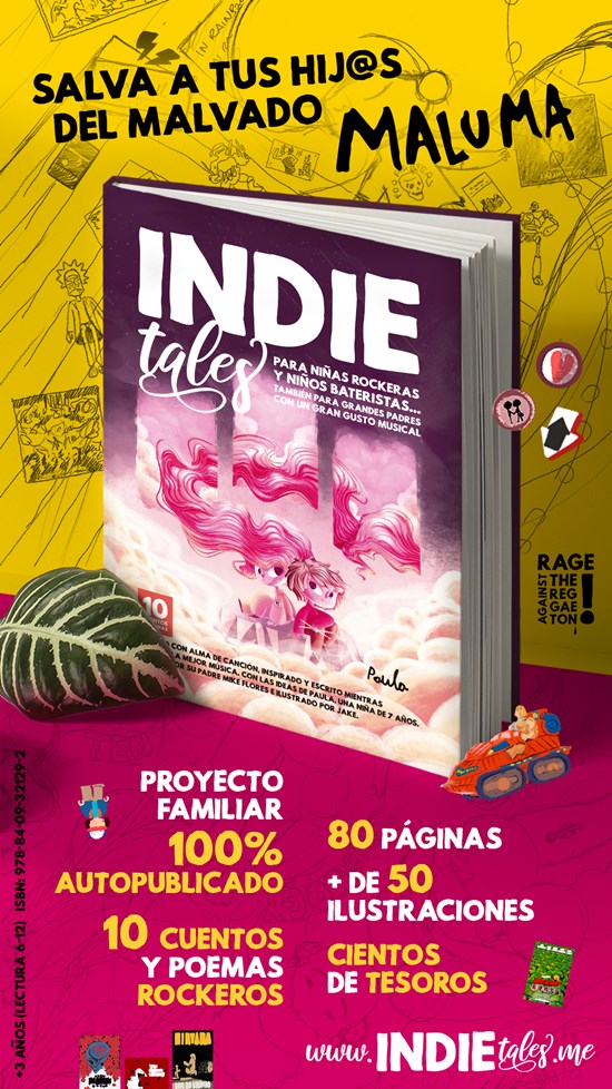 Presentamos "Indie tales", un libro rockero escrito por Mike Flores junto a su hija Paula que ahora tiene 7 años, 100% autopublicado sin ayuda editorial. El libro salió por fin a la venta en octubre, ya esta disponible en librerÃas y en la web www.indietales.me