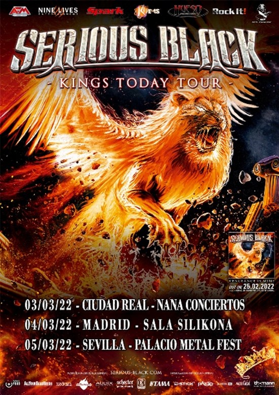 Han sido varios intentos de girar por nuestros escenarios, pero esperamos que en marzo de 2022 podamos disfrutar de la banda revelación del Power Metal Serious Black en nuestros escenarios. Serious Black además vendrá con nuevo disco de estudio y nueva Gira.