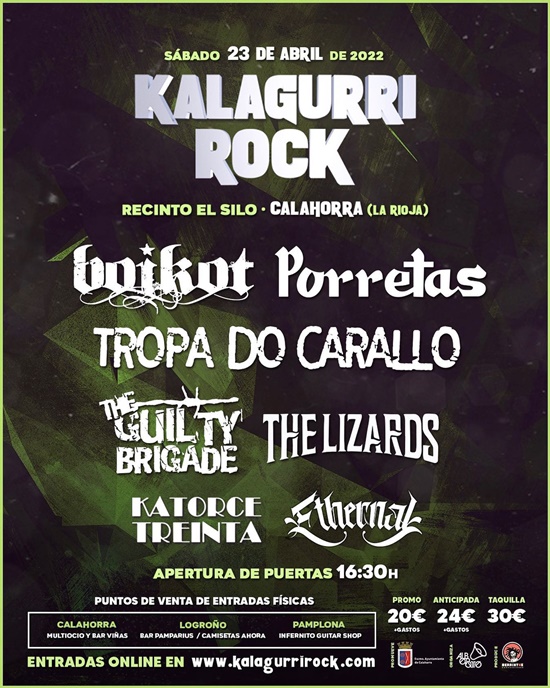 Ya se conoce el cartel del Kalagurri Rock de este año en el Recinto El Silo de Calahorra, La Rioja, este año cae el sábado 23 de abril, con Boikot, porretas, Tropa do Carallo...