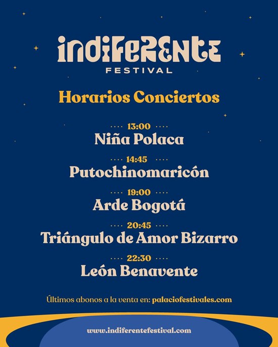 Ya tenemos los horarios del Indiferente Festival del próximo sábado 19 de marzo en el Palacio de Festivales de Santander