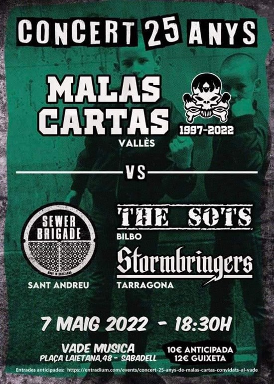 Malas Cartas, la banda de streetpunk del Vallés cumple XXV años y para celebrarlo ha montado un festi en el que estarán acompañados por varias bandas amigas del estilo.