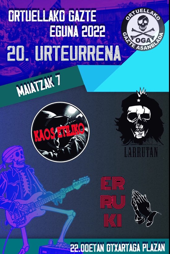 El 7 de mayo se celebrará el XX Aniversario del Gaztetxe de Ortuella, habrá actividades y a partir de las 22:00 h los conciertos de Kaos Etiliko, Erruki Erromeria...