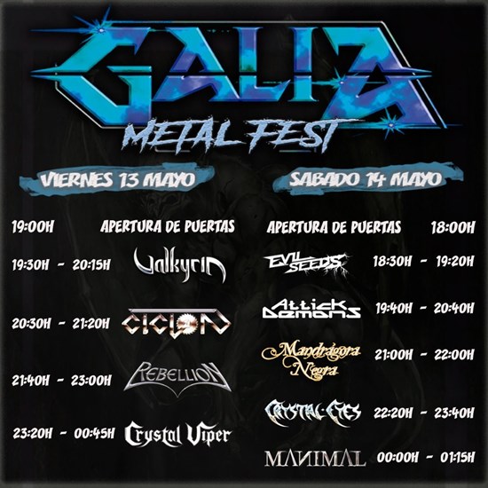 Este finde se celebrará una nueva edición del Galia Metal Fest, viernes y sábado, 13 y 14 de mayo respectivamente. Os dejamos con los horarios. Recordad, en el Urban Rock Concept de Vitoria-Gasteiz