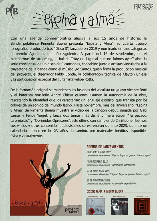 15 años de la banda Pimenta Buena y su nuevo disco, para celebrarlo harán una serie de nuevos lanzamientos durante las próximas semanas, sÃgueles en Spotify para saber de sus novedades