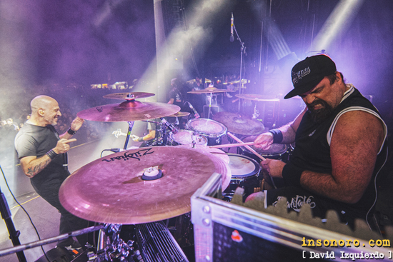 Con la apertura de puertas programada para una hora más temprana que el día anterior, sobre las 18:30 ya estábamos aparcando el coche en el reservado del recinto, para combatir el calor con una primera cerveza que nos rebajase unos grados, y que quizás subiese otros. El primer grupo para hoy eran los salmantinos de Endeudados (y quién no lo está o lo ha estado, pensé yo también), que con dos trabajos en su cartera, uno de mediana duración y otro largo propiamente dicho, dieron un buen espectáculo de rock para ir abriendo los sentidos y las energías. [ crónica ]
